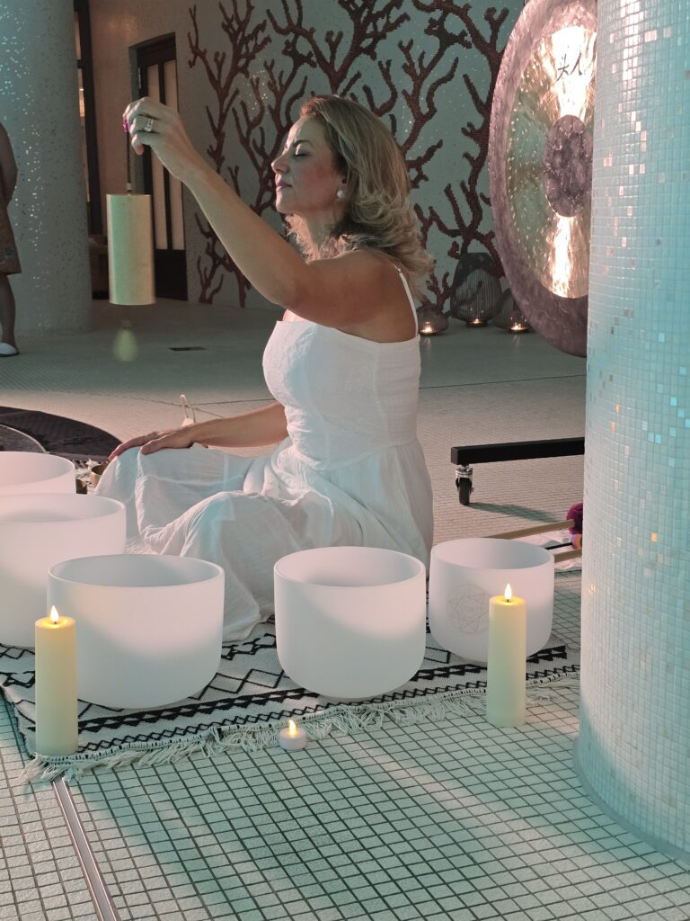 Himalayan and crystal bowls, gongs, therapeutic percussion, and calming scents create a holistic journey from external noise to presence, clarity, and inner harmony.